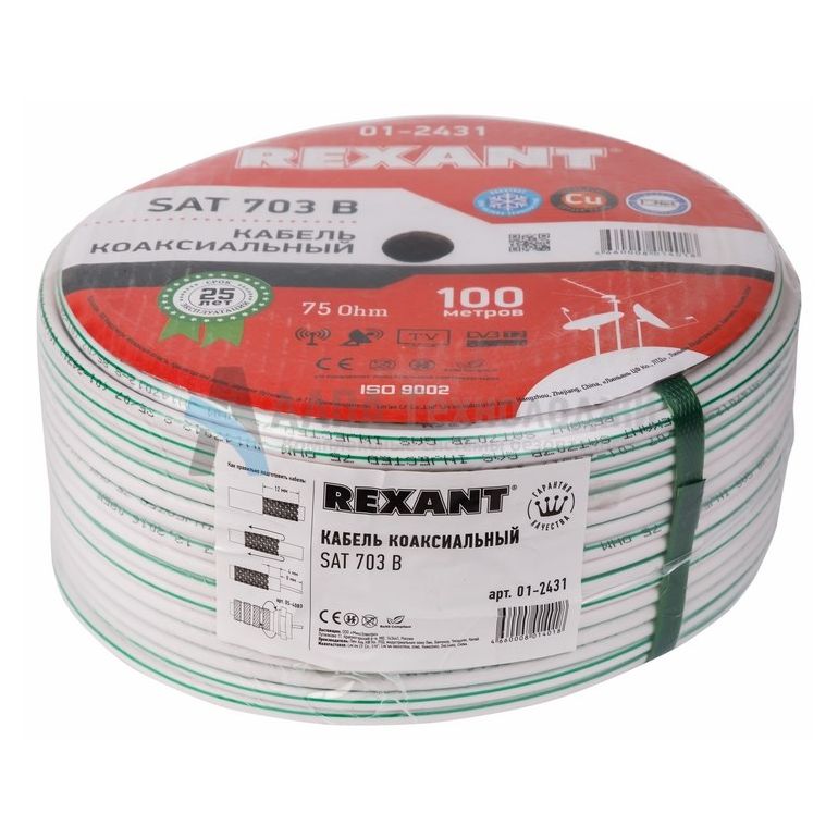 SAT 703 B Cu/Al/Cu 75% (01-2431) – кабель коаксиальный радиочастотный со вспененной полиэтиленовой изоляцией в ПВХ оболочке.