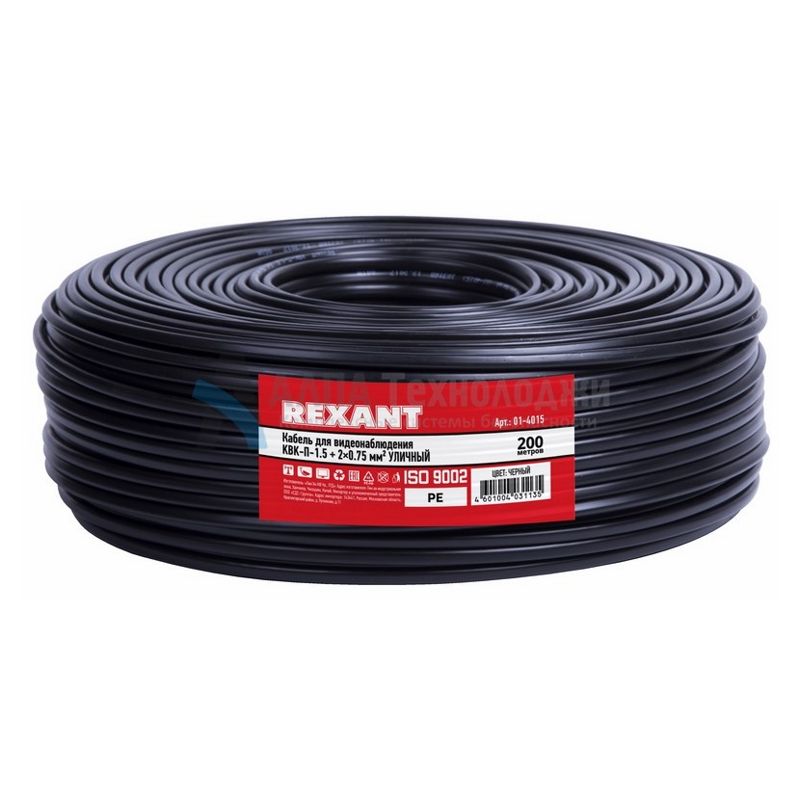 КВК-П-1,5 2x0,75 (Cu/Cu) (01-4015) – комбинированный кабель, черный, предназначен для передачи телевизионных сигналов в системах видеонаблюдения с одновременным подключением питания и/или передачи сигналов управления.