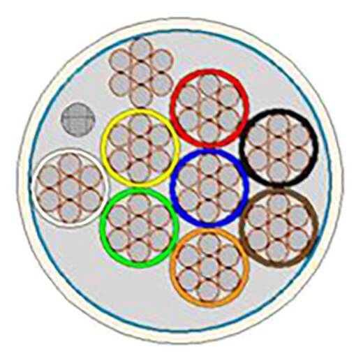 Каждая жила состоит из 7 скрученных луженых проволок из омедненного алюминия (ТССА) в полихлорвиниловой (ПВХ) оболочке.