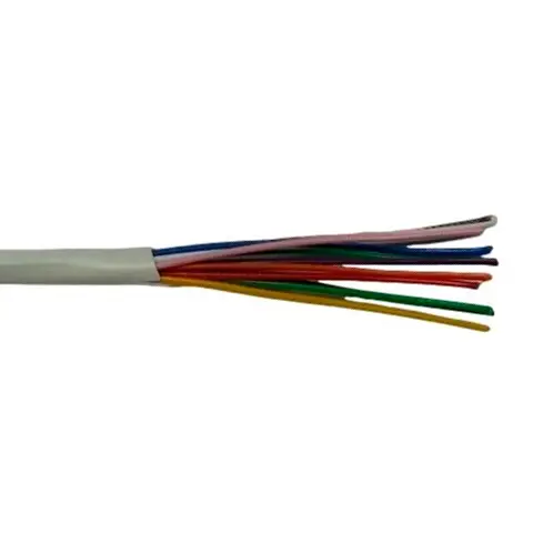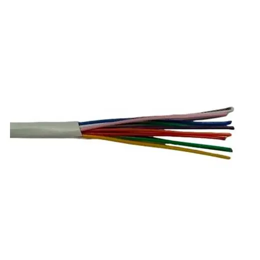Имеет 20 однопроволочных медных жил диаметром 0.5 мм. Индивидуальная изоляция токопроводящих жил выполнена из полиэтиленовой составляющей и окрашена в разные отличительные цвета. Наружная оболочка представлена в виде ПВХ пластиката белого цвета.