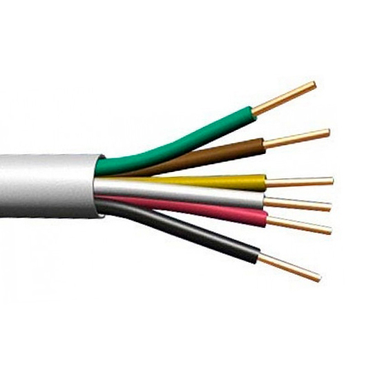 Имеет 6 однопроволочных медных жил диаметром 0.4 мм. Индивидуальная изоляция токопроводящих жил выполнена из ПВХ-составляющей и окрашена в индивидуальную расцветку. Наружная оболочка представлена в виде ПВХ пластиката белого цвета.