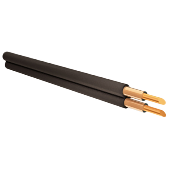 Имеет монолитные жилы из высококачественной меди. Кабель включает в себя пару изолированных проводников различного диаметра, расположенных в одной плоскости. Изоляция из полиэтилена высокого давления. Допустим любой цвет изоляции, кроме черного.