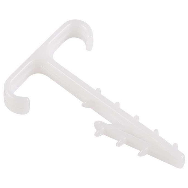 Дюбель-хомут Т-образный 2х12 мм – дюбель-хомут нейлоновый Т-образный для двух плоских кабелей сочетает в себе сразу два элемента - дюбель и скобу, дает возможность прокладки 2 кабелей одновременно.