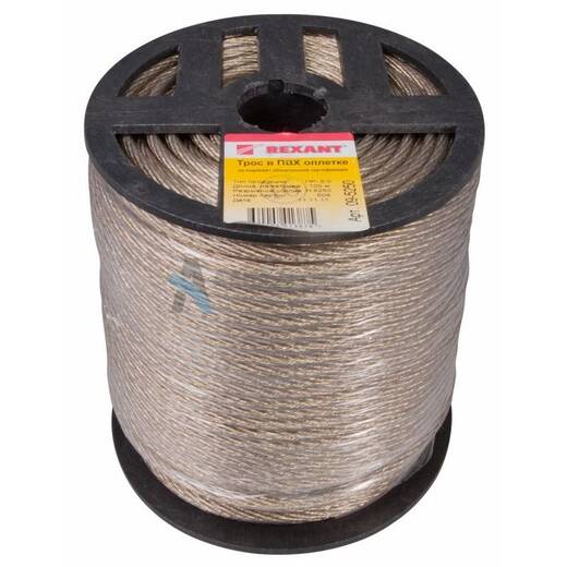 Rexant 09-5250 – стальной трос с полимерным покрытием, свивается из высокоуглеродистой стальной проволоки (латунированной с высоким содержанием углерода) и покрывается ПВХ, выдерживая перепады температуры -60…+110°С при этом не сказываются на эластичности троса. Применяемые марки пластиката существенно повышают устойчивость тросов к воздействию агрессивных сред, солнечного излучения.