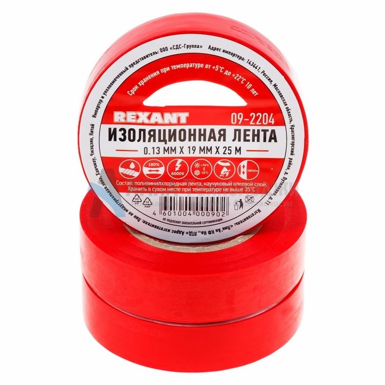 Изолента ПВХ 19 мм × 25 м Rexant – это поливинилхлоридная пленка, разрезанная на полосы шириной 19 мм и длиной 25 метров. Красный цвет. На одну ее сторону нанесено клеевое покрытие, которое и играет ключевую роль в предназначении этого расходного материала.