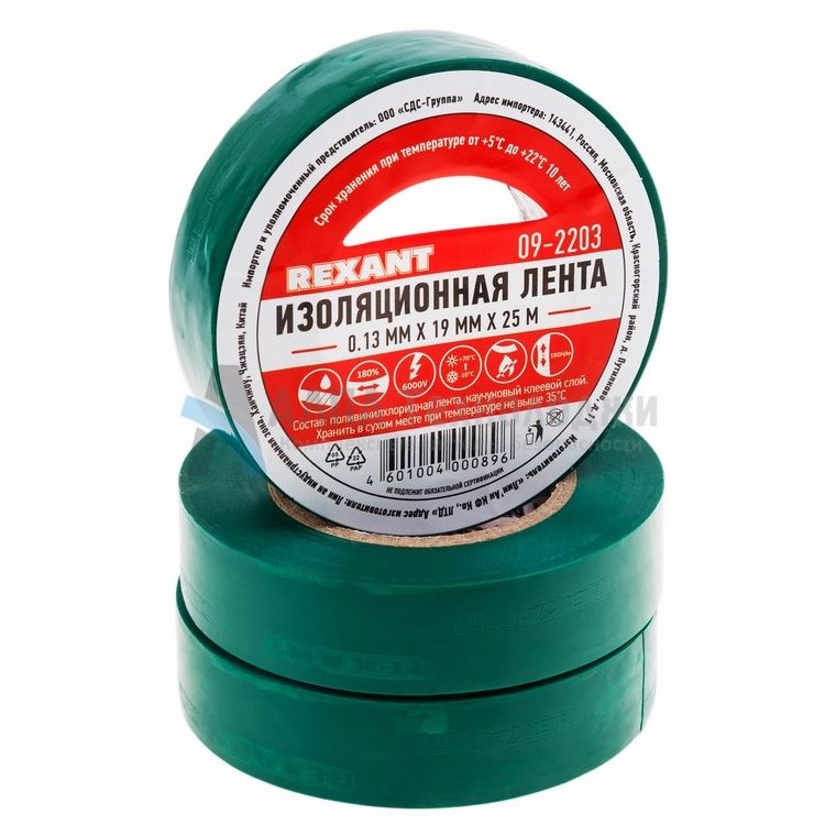 Изолента ПВХ 19 мм × 25 м Rexant – это поливинилхлоридная пленка, разрезанная на полосы шириной 19 мм и длиной 25 метров. Цвет зеленый. На одну ее сторону нанесено клеевое покрытие, которое и играет ключевую роль в предназначении этого расходного материала.