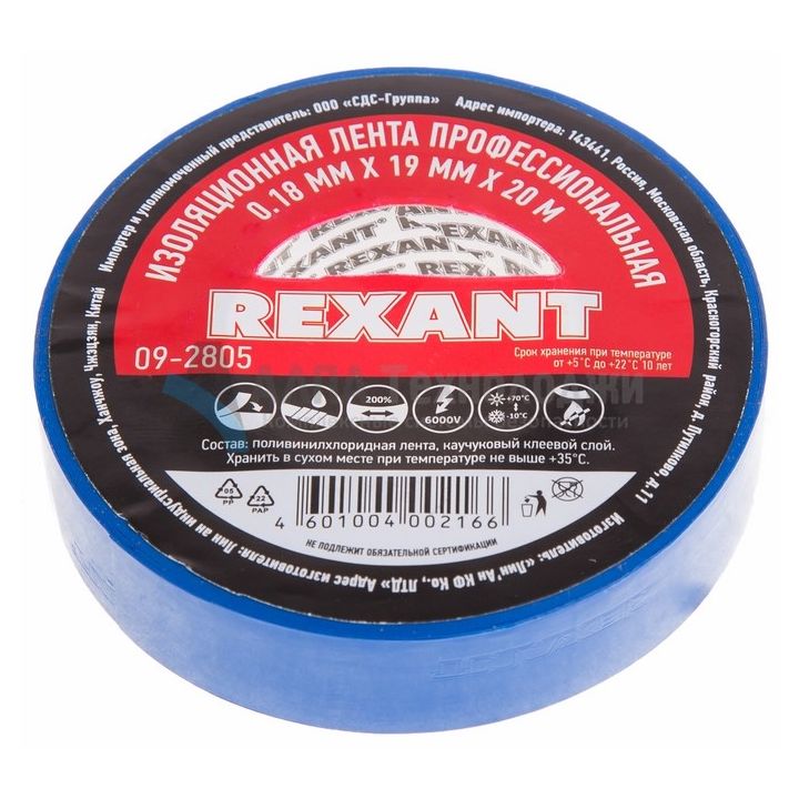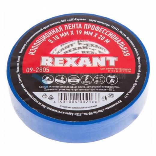 Изолента ПВХ профессиональная 20м х 19мм х 0.18мм (синий) Rexant