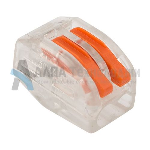 Универсальная клемма 2-проводная – соединительная многоразовая клемма на 2 проводника с плоско-пружинным зажимом в прозрачном корпусе, предназначена для подсоединения медных одножильных и многожильных проводников тонкого сечения.