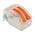 Перед монтажом с соединяемых проводников необходимо снять изоляцию в соответствии с обозначениями на корпусе клеммы (9-12 мм). Зачищенный участок с монтажной стороны не должен иметь сильных изгибов. Вставьте его в свободное гнездо клеммы, предварительно подняв оранжевый рычажок, после этого опустите рычажок в исходное положение. Контакт осуществляется путем зажима проводника пластиной. Конструкция предотвращает случайное размыкание контакта. Специальное технологическое отверстие на корпусе клеммы предназначено для проверки соединения тестером-пробником или щупом мультиметра. Оболочка из прозрачного пластика делает контакт изолированным, а также позволяет визуально оценить положение проводника.