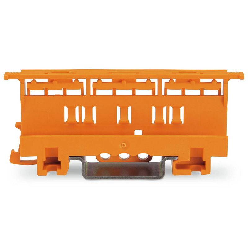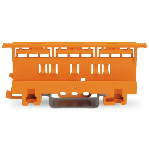 Wago 221-500 – монтажный адаптер для 2-, 3- и 5-проводных клемм серии 221 (4 мм²) для винтового крепления или крепления на рейку DIN-35. Цвет - оранжевый.