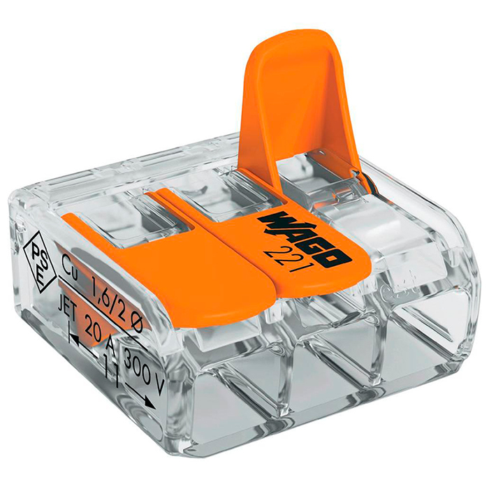 Wago 3 (221-613) – соединитель 3-проводный для сращивания COMPACT.