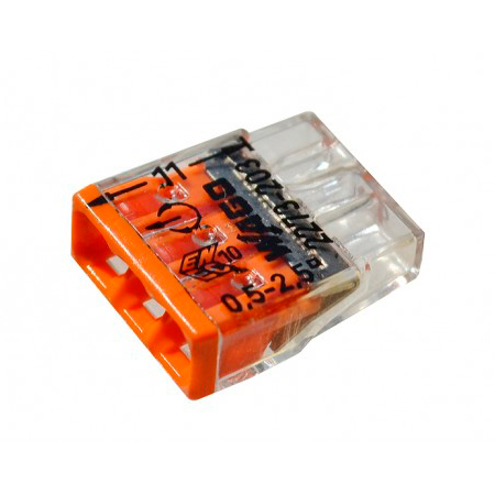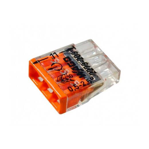 Wago 3 (2273-203) – компактная клемма 3-контактная монтажная для одножильных медных проводов 0.5-2.5 мм².
