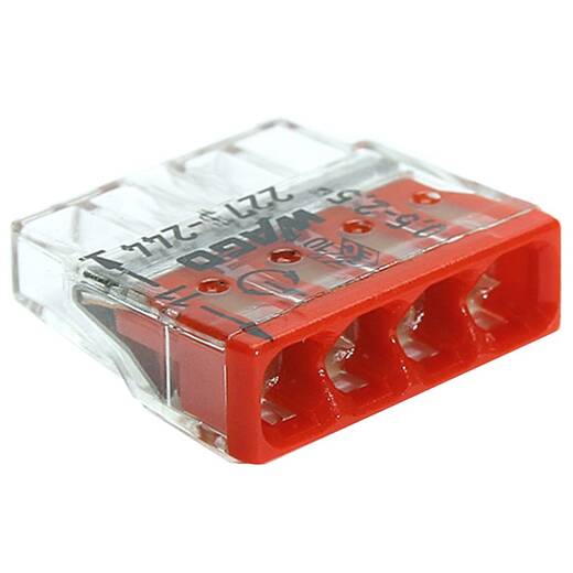 Wago 4 (2273-244) – соединительная клемма 4-контактная с пастой для быстрого монтажа проводов из алюминия и меди 0.5-2.5 мм².