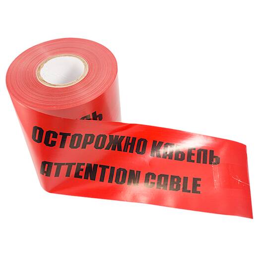 Лента сигнальная "Осторожно кабель" – лента красного цвета, с нанесенным логотипом "Осторожно кабель. Attention cable" черного цвета.