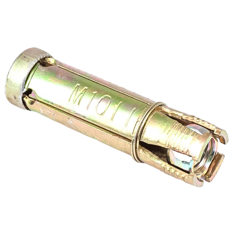 Анкер с сегментной гильзой 10мм (цинк) – анкер для ответственного монтажа тяжеловесных конструкций к бетону, камню, кирпичу. Состоит из 4-х сегментной распорной втулки и распорного конуса с внутренней метрической резьбой. Используется вместе с болтом или шпилькой с метрической резьбой. Часто применяется при монтаже подвесных потолков, воздуховодов и систем вентиляции.