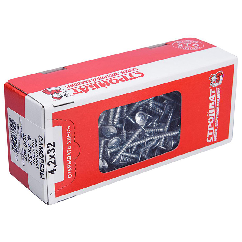 Саморез для тонких пластин "клоп" 4,2x32 мм – саморез для крепления металлических листов толщиной до 0.9 мм без предварительного сверления к деревянному основанию. Пресс-шайба плотно прижимает листовой материал к основанию, придавая всему соединению прочность и надежность.