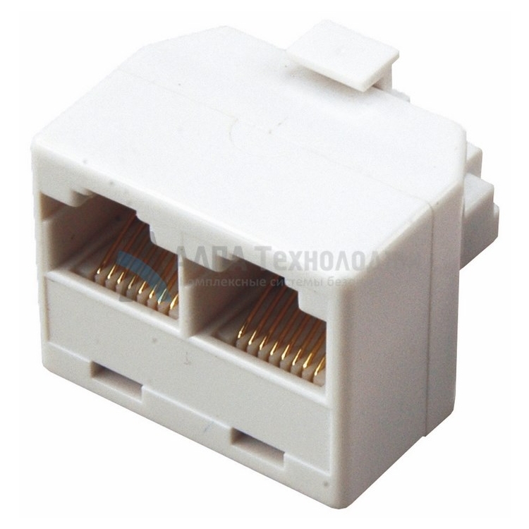 На одном конце двойника расположен штекер 8Р-8С, подключающийся в гнездо 8P-8C. На другом конце - два гнезда 8Р-8С, предназначенные для двух кабелей. Благодаря этому прокладка и эксплуатация компьютерной сети становится простой и удобной.