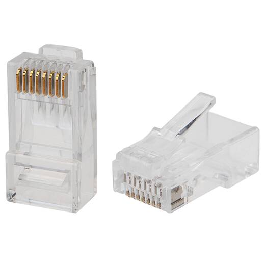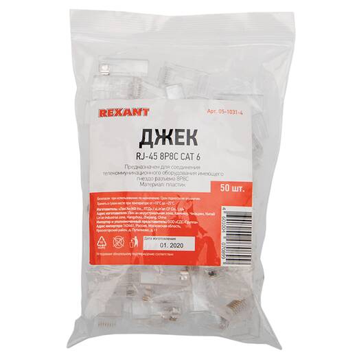 Разъем RJ-45 (8P8C) UTP категории 6 применяется для построения компьютерных сетей. Размещается на конце компьютерных кабелей и соединяет их с розеткой, хабом, свитчом, сервером, роутером или другим компьютером. Фиксация разъема на кабеле производится специальным обжимным инструментом.
