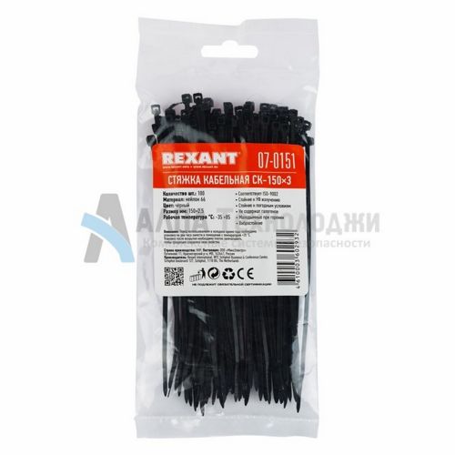 Rexant 07-0150/07-0151 – хомут нейлоновый (кабельная стяжка) для крепления или обвязки в жгут кабелей и проводов, крепления гибких гофротруб, а также других предметов к несущей поверхности или для соединения между собой. Такая стяжка используется при проведении электромонтажных работ, при монтаже структурированных кабельных систем, для бытовых нужд, а также в других отраслях народного хозяйства.