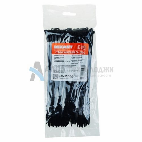 Rexant 07-0200/07-0201 – хомут нейлоновый (кабельная стяжка) для крепления или обвязки в жгут кабелей и проводов, крепления гибких гофротруб, а также других предметов к несущей поверхности или для соединения между собой. Такая стяжка используется при проведении электромонтажных работ, при монтаже структурированных кабельных систем, для бытовых нужд, а также в других отраслях народного хозяйства.