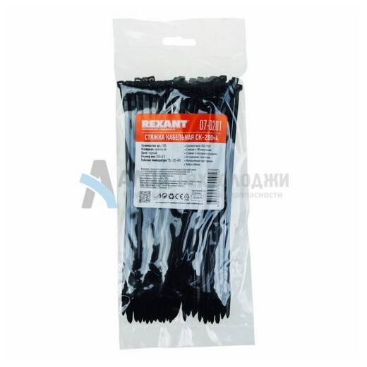 Хомут-стяжка 200х3,6 мм черная (07-0201) Rexant