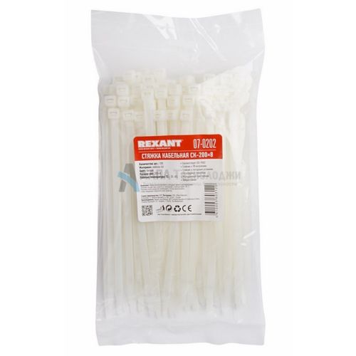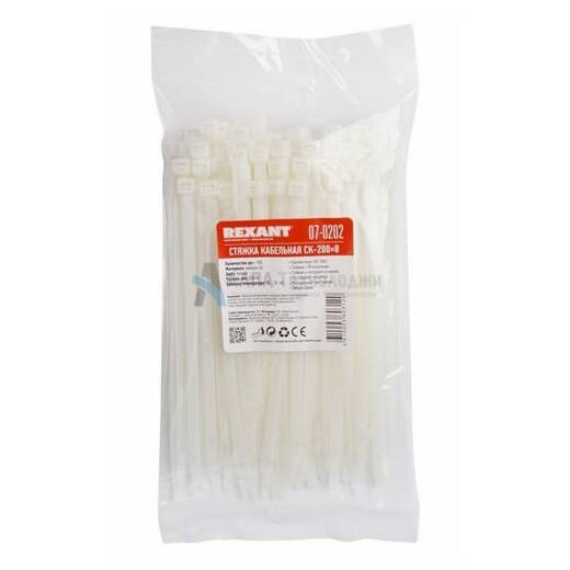 Rexant 07-0202/07-0203 – хомут нейлоновый (кабельная стяжка) для крепления или обвязки в жгут кабелей и проводов, крепления гибких гофротруб, а также других предметов к несущей поверхности или для соединения между собой. Такая стяжка используется при проведении электромонтажных работ, при монтаже структурированных кабельных систем, для бытовых нужд, а также в других отраслях народного хозяйства.