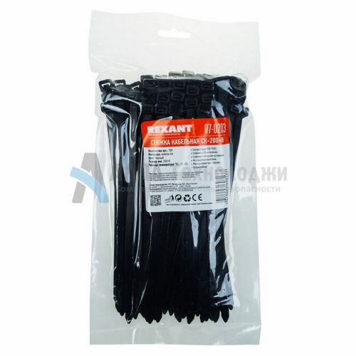 Rexant 07-0202/07-0203 – хомут нейлоновый (кабельная стяжка) для крепления или обвязки в жгут кабелей и проводов, крепления гибких гофротруб, а также других предметов к несущей поверхности или для соединения между собой. Такая стяжка используется при проведении электромонтажных работ, при монтаже структурированных кабельных систем, для бытовых нужд, а также в других отраслях народного хозяйства.