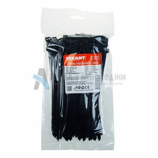 Хомут-стяжка 200х7,6 мм черная (07-0203) Rexant