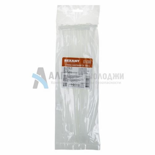 Rexant 07-0300/07-0301 – хомут нейлоновый (кабельная стяжка) для крепления или обвязки в жгут кабелей и проводов, крепления гибких гофротруб, а также других предметов к несущей поверхности или для соединения между собой. Такая стяжка используется при проведении электромонтажных работ, при монтаже структурированных кабельных систем, для бытовых нужд, а также в других отраслях народного хозяйства.