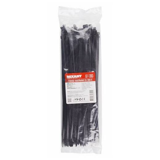 Хомут-стяжка 300х4,8 мм черная (07-1303) Rexant