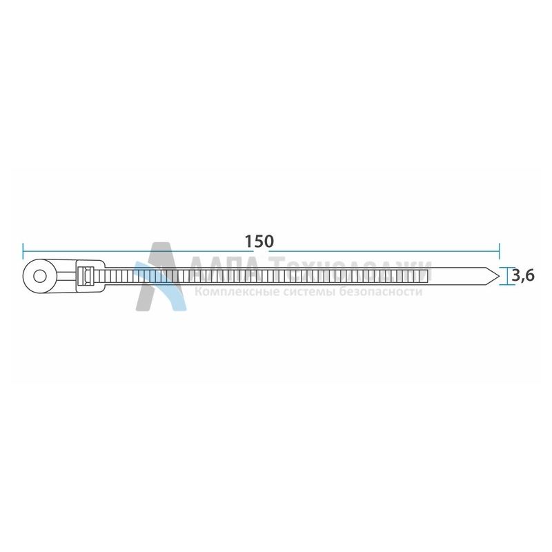 Хомут-стяжка с отверстием 150х3,6 мм черная (07-0155) Rexant
