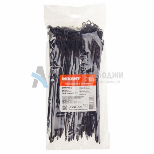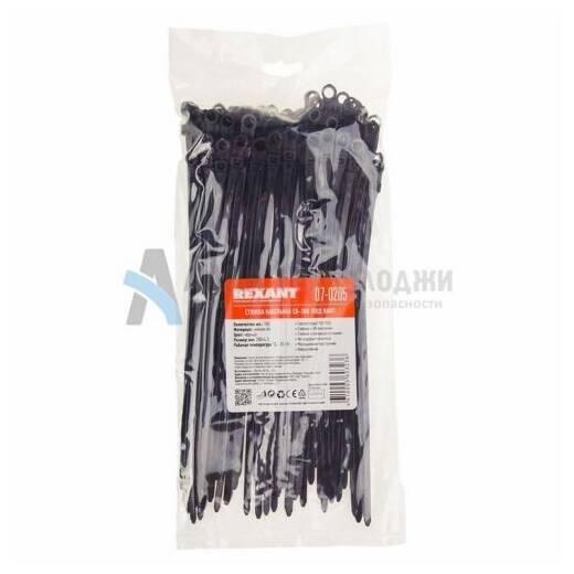 Хомут-стяжка с отверстием 200х4,3 мм черная (07-0205) Rexant