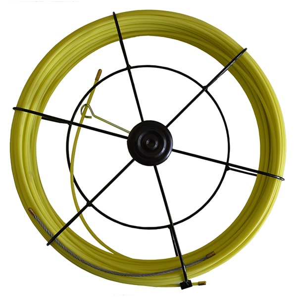 Применяется для протяжки витой пары и других видов кабеля через трубы, металлорукава, короба и каналы при прокладке линий. Пруток наматывается в металлическую кассету, в которой катушка легко вращается при выдаче прутка и работе с устройством и закручивается внутрь после работы.
