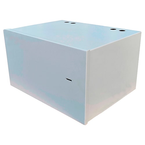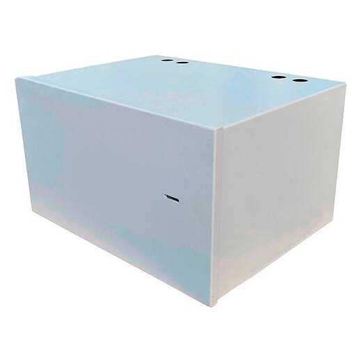 Бокс изготовлен из листовой стали толщиной 1-2 мм, имеет цельносварной корпус со съемной крышкой. Для монтажа предусмотрены сквозные отверстия в задней стенке. Крепеж к стене в комплект не входит.