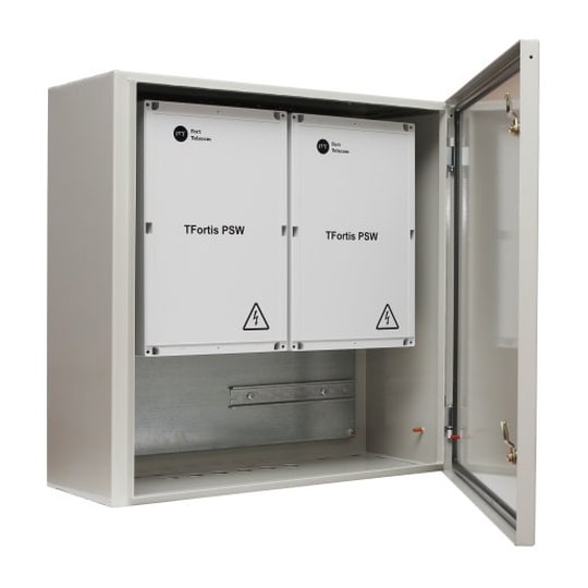 В шкаф можно установить до 2 больших коммутаторов TFortis PSW или до 4 маленьких коммутаторов, а также блок грозозащиты для PSW TFortis SG-Switch.