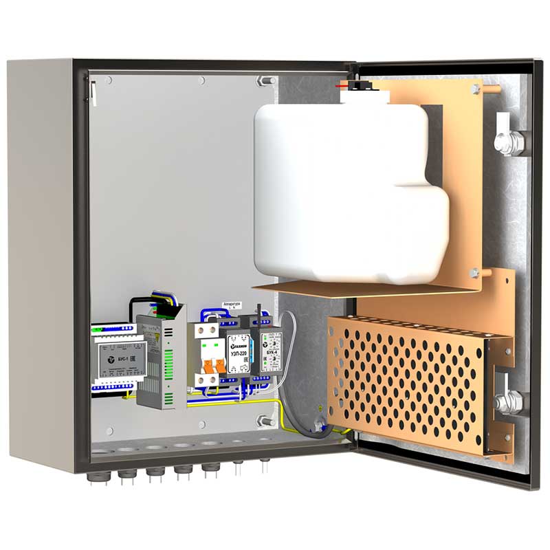 ТШН-3-09 – термошкаф предназначен для установки в нем блока управления стеклоочистителем (БУС-1), бачка стеклоомывателя с насосом и датчиком уровня омывающей жидкости, а также другого электронного оборудования и поддержания заданного температурного режима при эксплуатации этого оборудования в условиях морского климата, химических производств, автомагистралей, тоннелей и прочих агрессивных сред.