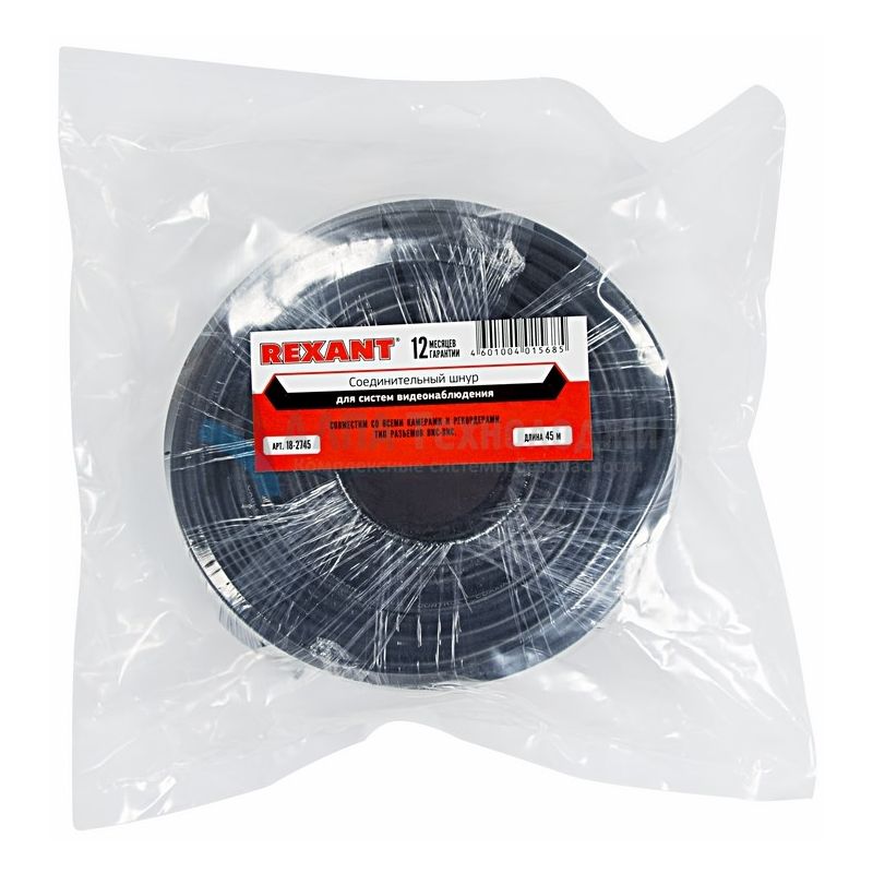 Rexant 18-2745 – соединительный шнур для систем видеонаблюдения (BNC-BNC), предназначен для передачи видео/аудио сигнала от камеры видеонаблюдения к ресиверу или видеорегистратору (DVR). С обеих сторон шнура располагаются штекеры разъема BNC. В целях удлинения линии возможно соединять аналогичные шнуры между собой с помощью переходника-соединителя.