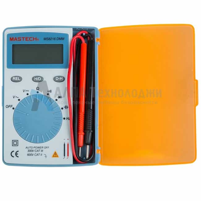 В комплект поставки входит удобный ударопрочный чехол с отсеком для хранения щупов и откидной крышкой, комплект щупов и инструкция на русском языке.