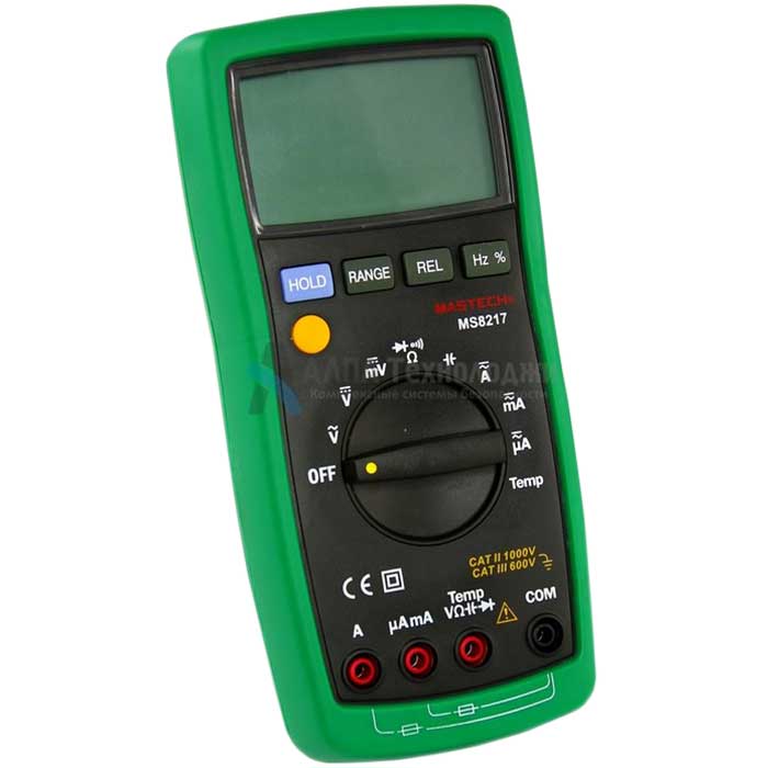 Mastech MS8217 – профессиональный цифровой мультиметр с автоматическим выбором пределов измерения позволяет производить измерения величин силы постоянного и переменного тока, постоянного и переменного напряжения, сопротивления, емкости конденсаторов, частоты сигнала, скважности импульсов (отношение периода следования импульсов и их длительности), температуры окружающей среды в широком диапазоне.