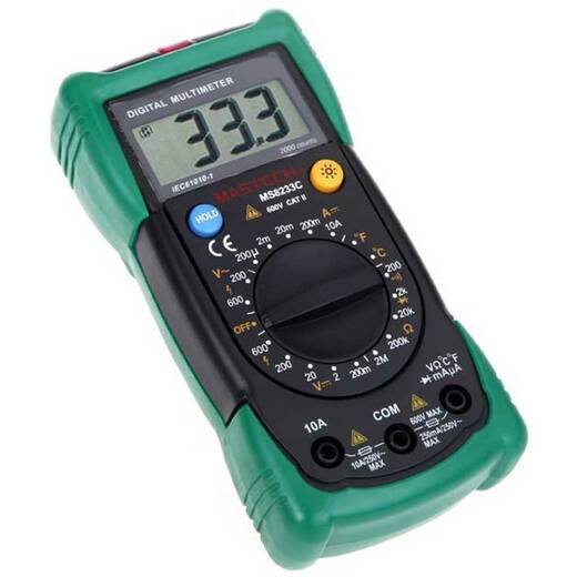 MS8233C – электроизмерительный прибор, измеряет постоянное и переменное напряжение, а также постоянный ток, сопротивление в цепи и температуру. С помощью данного прибора можно проводить тестирование диодов и осуществлять прозвонку целостности цепи. Также мультиметр оборудован специальным датчиком, с помощью которого вы бесконтактно сможете определить есть ли напряжение на участке.