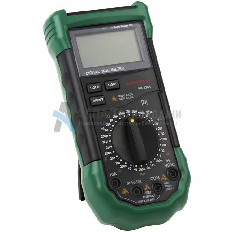 Mastech MS8265 – профессиональный цифровой мультиметр с большим пятизначным ЖК-дисплеем. Позволяет измерять силу тока постоянного и переменного напряжения, величины постоянного и переменного напряжения, сопротивления, емкость конденсаторов, частоту сигнала и коэффициент усиления биполярных транзисторов.