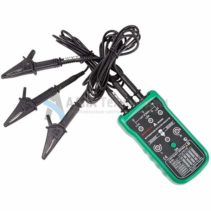 MS5900 – детектор последовательности фаз (индикатор чередования фаз), предназначен для определения порядка чередования фаз в трехфазных цепях переменного тока, а также направления вращения трехфазных двигателей.