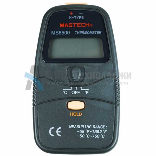 MS6500 – цифровой термометр позволяет измерить температуру окружающей среды или какого-либо предмета. В приборе применяется термопара типа «К», которая подключается через разъем в верхней части корпуса.