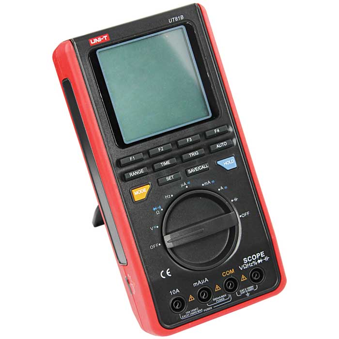 UNI-T UT81B – портативный осциллограф, представляет собой уникальное сочетание осциллографа и мультиметра, с большим количеством функций и настроек в компактном корпусе. С помощью данного прибора можно измерить постоянное и переменное напряжение, сопротивления и ток. Кроме того, он имеет функции измерения электрической емкости и частоты, а также с его помощью можно тестировать диоды и проводить прозвонку целостности цепи.