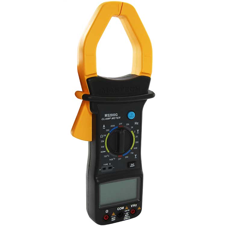 Mastech MS2000G – токоизмерительные клещи, позволяют измерять переменный ток без разрыва самой цепи, в которой проводится измерение. Прибор получает результат измерений, исходя из закона электромагнитной индукции. Кроме основной функции, с помощью клещей можно измерить постоянное и переменное напряжение, сопротивление, частоту сигнала и температуру. Также есть функция прозвонки целостности цепи и проверки диодов.