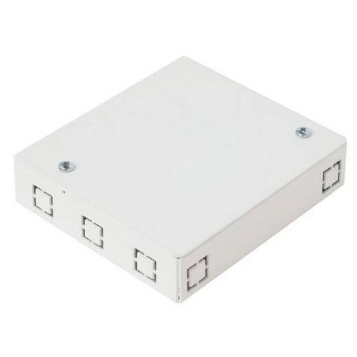 КК-2757 – универсальная коммутационная коробка (пустая, без модуля коммутации) с отверстиями для крепления к стене, множеством окошек "под вылом" для входящих кабелей и крышкой.