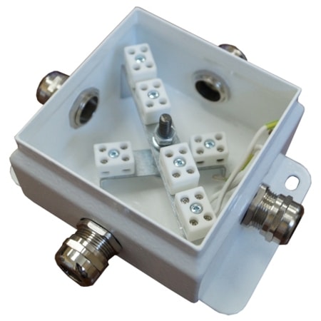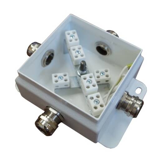 Внутри корпуса установлены керамические клеммные колодки, обеспечивающие соединение "под винт", и зажим заземления. Крышка соединяется проводом заземления с зажимом «РЕ» внутри корпуса.