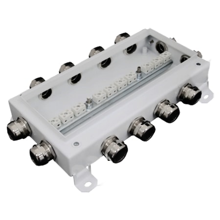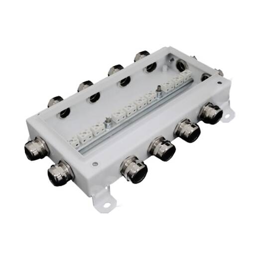 Внутри корпуса установлены керамические клеммные колодки, обеспечивающие соединение "под винт", и зажим заземления. Крышка соединяется проводом заземления с зажимом «РЕ» внутри корпуса.