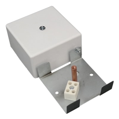 Внутри корпуса располагаются керамические клеммные колодки, обеспечивающие соединение "под винт", и зажим заземления. Для крепления к элементам конструкций в днище корпуса предусмотрены отверстия для винтов или саморезов.