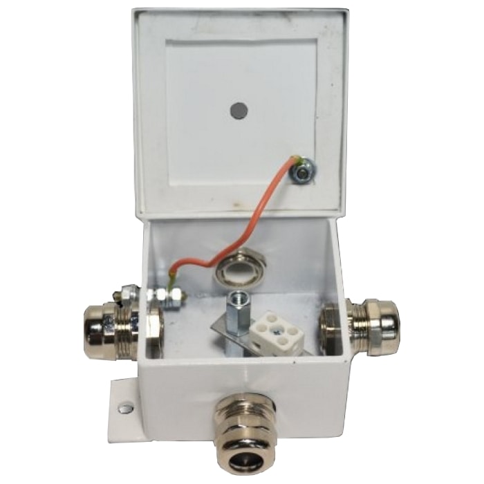 Внутри корпуса установлены керамические клеммные колодки, обеспечивающие соединение "под винт", и зажим заземления. Крышка соединяется проводом заземления с зажимом «РЕ» внутри корпуса.